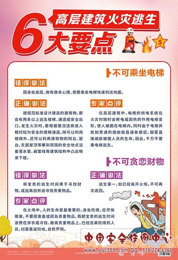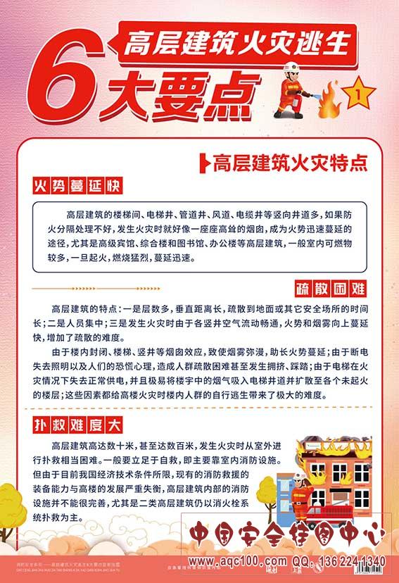 >> 高层建筑火灾逃生6大要点宣教挂图ZAG0173