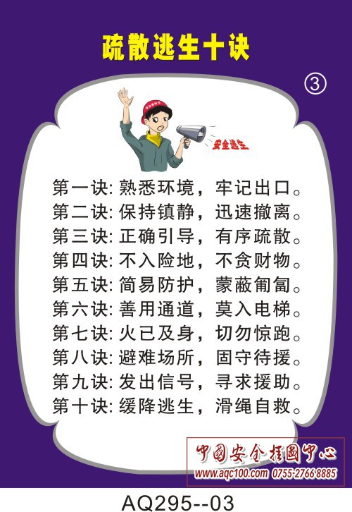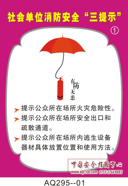 本套挂图主要介绍了社会单位消防安全“三提示”、消防安全管理人员应做到“四查”、疏散逃生十诀、员工自身应做到“三懂、三会”、社会单位消防安全管理、常见的消火标志为社会单位指明了消防方向。