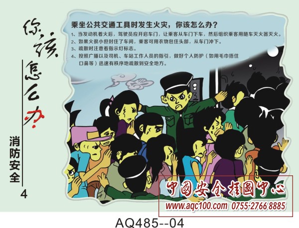 AQ485-04 乘坐公共交通工具时发生火灾,你该怎么办?