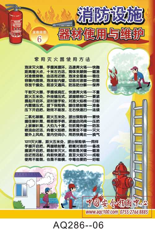 AQ286-06消防设施器材使用与维护挂图 常用灭火器使用方法