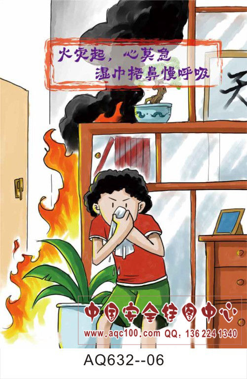 AQ632-06 火灾起,心莫急,湿巾捂鼻慢呼吸