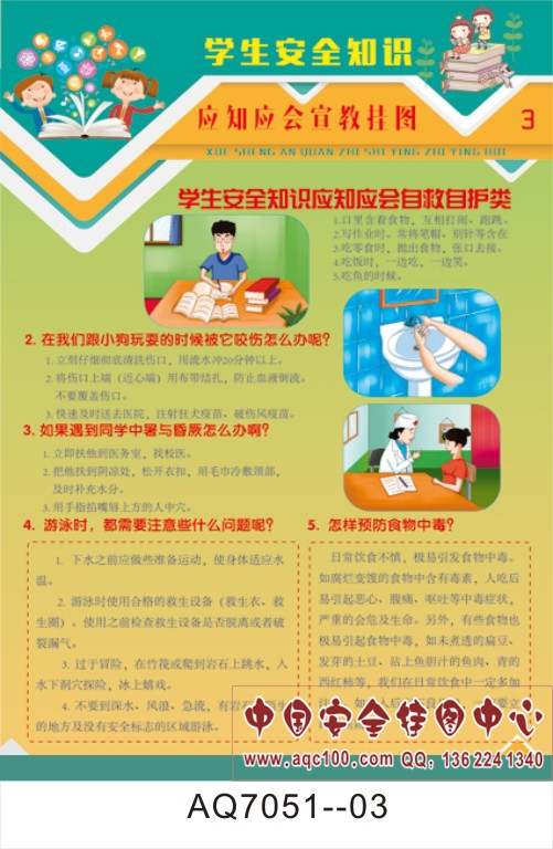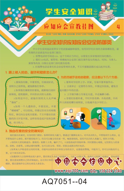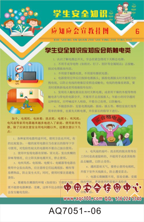 AQ7051--学生安全知识应知应会宣传挂图-6张