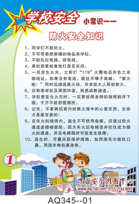 AQ345--学校安全小常识挂图-10张