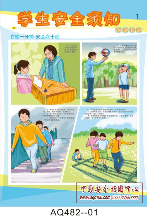 AQ482-01学生安全须知宣教挂图 在校一分钟 安全六十秒