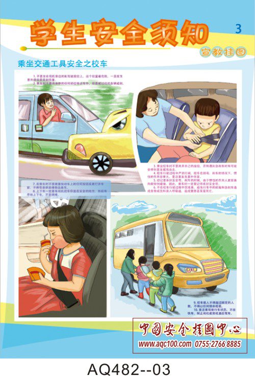 AQ482-03学生安全须知宣教挂图 乘坐交通工具安全之校车