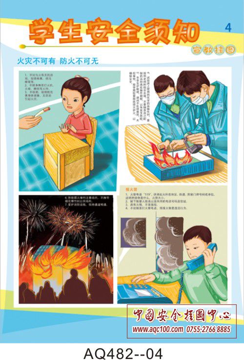AQ482-04学生安全须知宣教挂图 火灾不可有 防火不可无