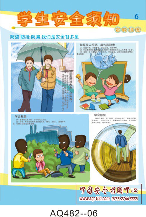 AQ482-06学生安全须知宣教挂图 防盗防抢防骗