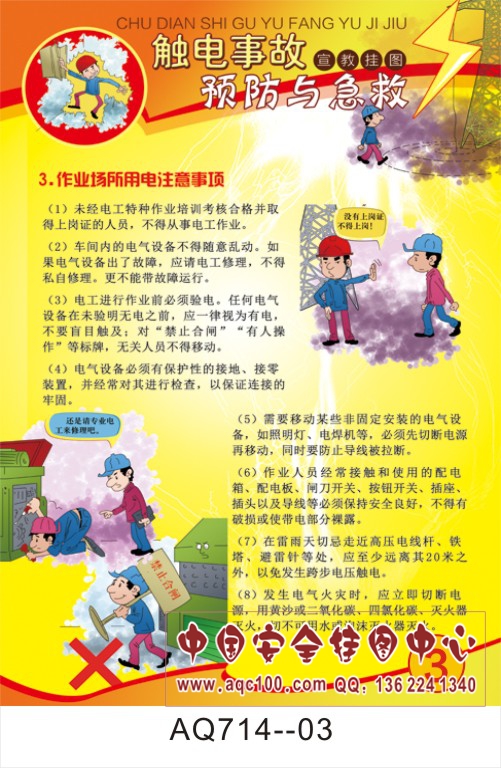 AQ714-03触电事故预防与急救宣传挂图 作业场所用电注意事项