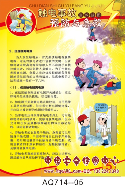 AQ714-05触电事故预防与急救宣传挂图 迅速脱离电源