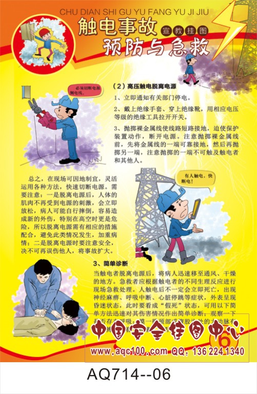 AQ714-06触电事故预防与急救宣传挂图 高压触电脱离电源