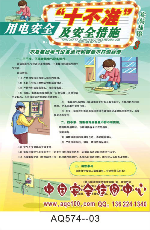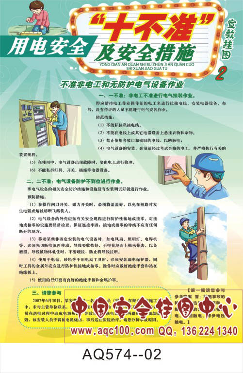 AQ574--用电安全十不准及安全措施宣传挂图-6张