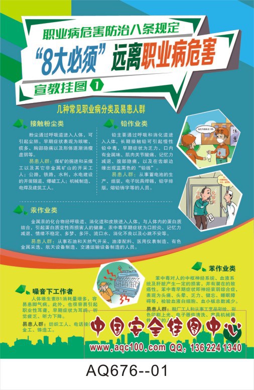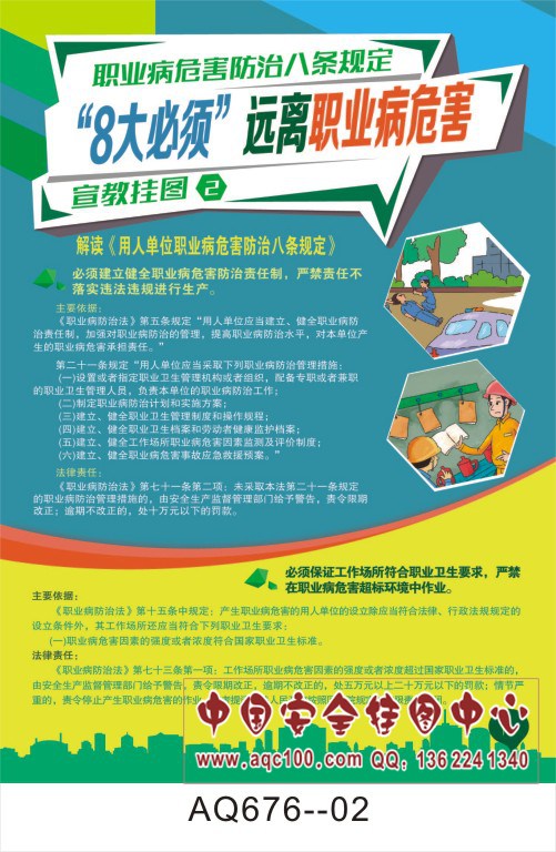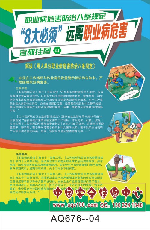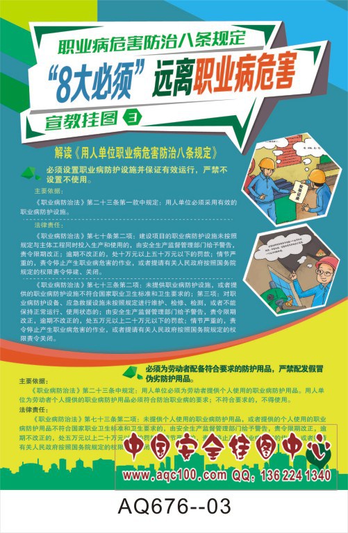 AQ676--职业病危害防治八条规定-8大必须远离职业病危害宣传挂图-6张