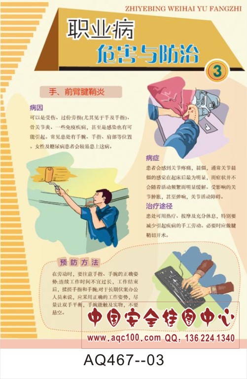 AQ467--03职业病危害与防治宣传挂图 手前臂腱鞘炎