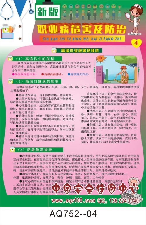 AQ752-04新版职业病危害及防治宣传挂图 高温作业危害及预防