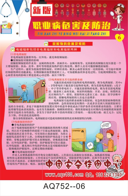 AQ752-06新版职业病危害及防治宣传挂图 放射物的危害及预防