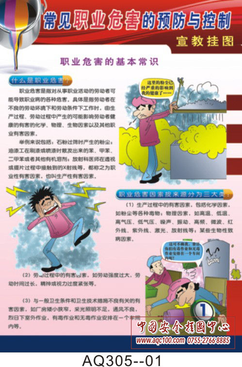 AQ305-01-常见职业危害的预防与控制挂图-职业危害的基本常识 AQ305-02-常见职业危害的预防与控制挂图-生产性毒物防护 AQ305-03-常见职业危害的预防与控制挂图-生产性粉尘防护 AQ305-04-常见职业危害的预防与控制挂图-物流有害因素防护<一> AQ305-05-常见职业危害的预防与控制挂图-物流有害因素防护<二> AQ305-06-常见职业危害的预防与控制挂图-物流有害因素防护<三>