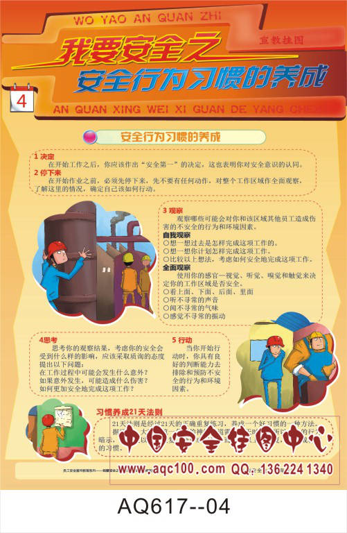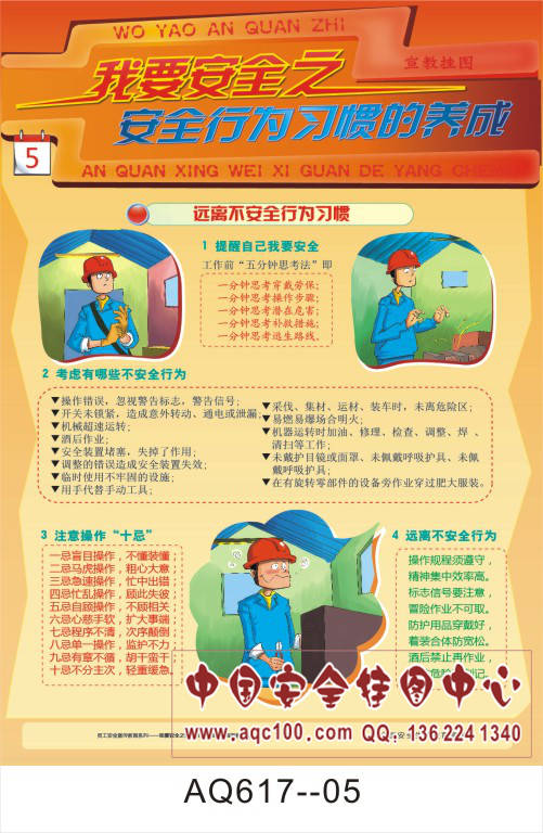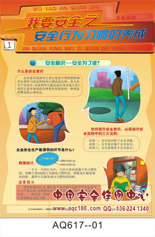 AQ617--我要安全之安全行为习惯的养成宣传挂图-6张