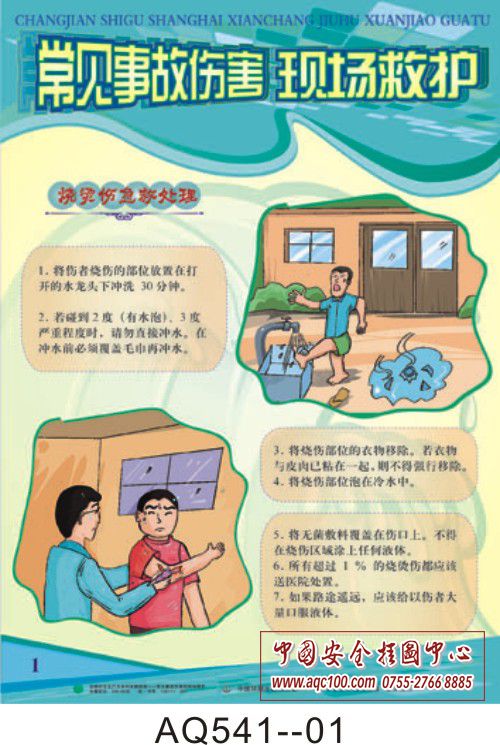 AQ541-01常见事故伤害现场救护挂图 烧烫伤急救处理 AQ541-02常见事故伤害现场救护挂图 中毒事故现场救护 AQ541-03常见事故伤害现场救护挂图 触电事故现场救护 AQ541-04常见事故伤害现场救护挂图 机械伤害事故现场救护 AQ541-05常见事故伤害现场救护挂图 切割伤害事故现场救护 AQ541-06常见事故伤害现场救护挂图 碰撞伤害事故现场救护