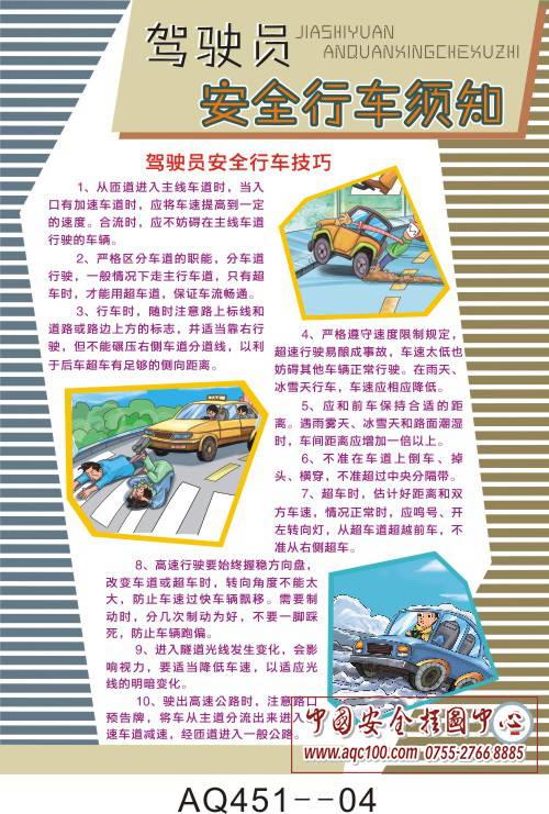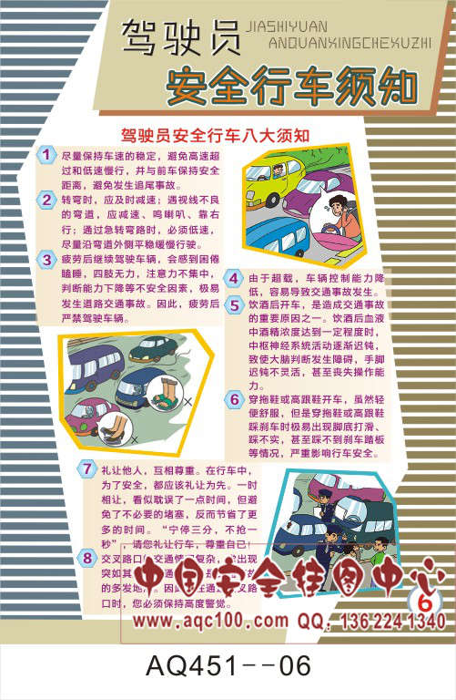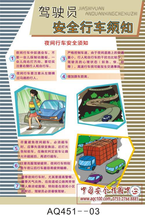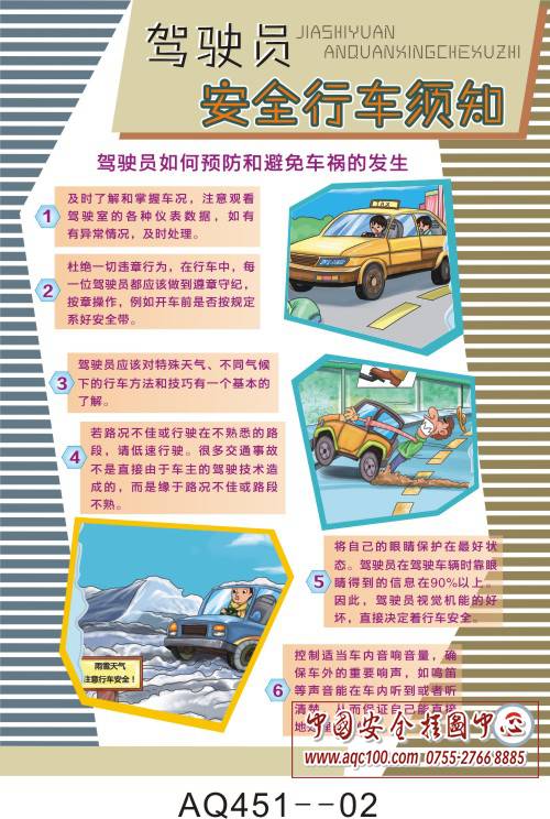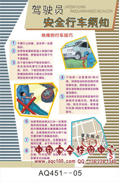 AQ451-02 驾驶员如何预防和避免车祸的发生 AQ451-03 夜间行车安全须知 AQ451-04 驾驶员安全行车技巧 AQ451-05 地库的行车技巧 AQ451-06 驾驶员安全行车八大须知