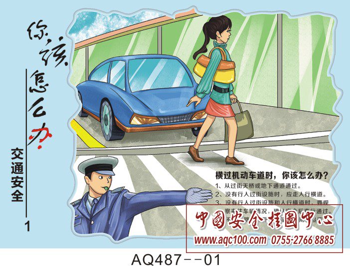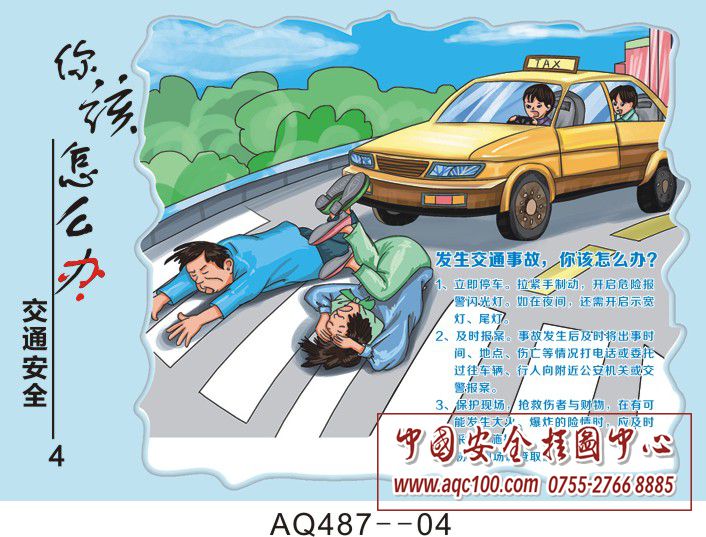 AQ487--你该怎么办?交通安全知识挂图-5张