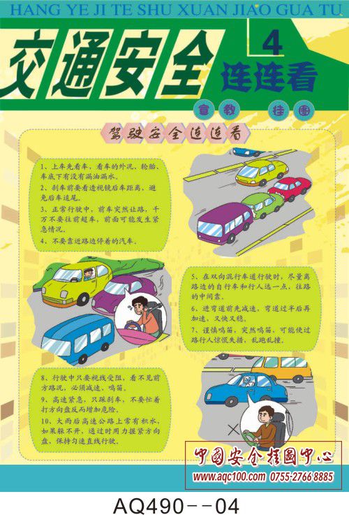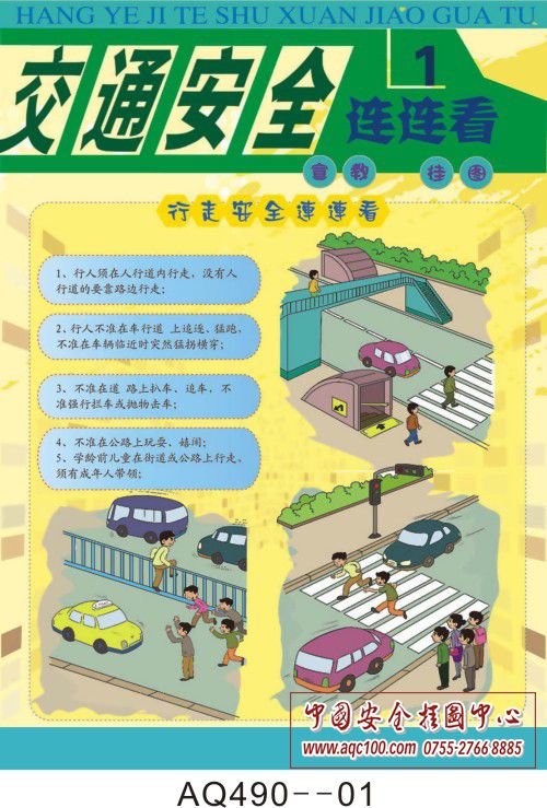 本套挂图系统地介绍了交通安全知识,为道路交通出行安全和企业内工作用车安全提供了参考。挂图包括行人交通安全、非机动车行驶安全、驾车行驶安全、乘车安全、交通标识标志,内容丰富细致,布局明快合理。