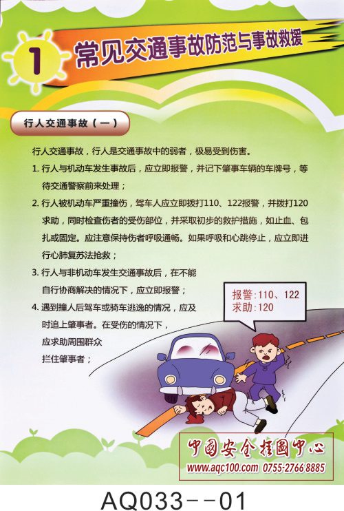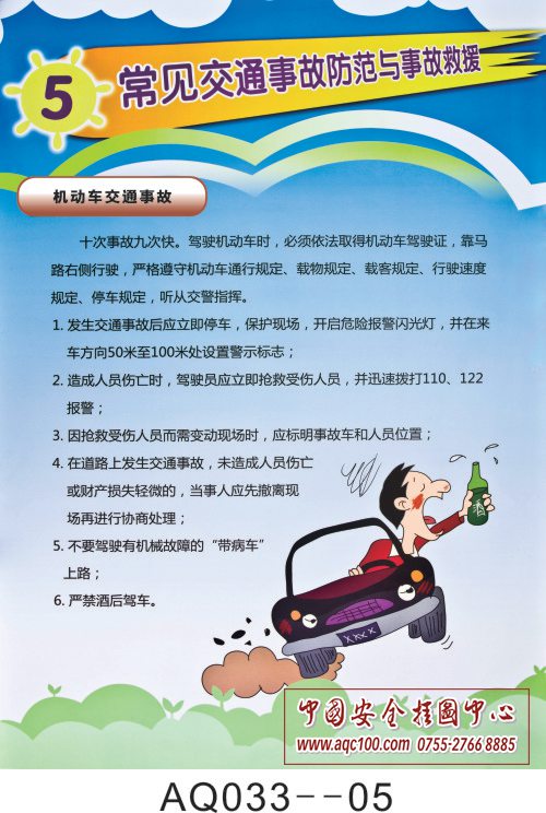 AQ033--常见交通事故防范与事故救援安全挂图-6张