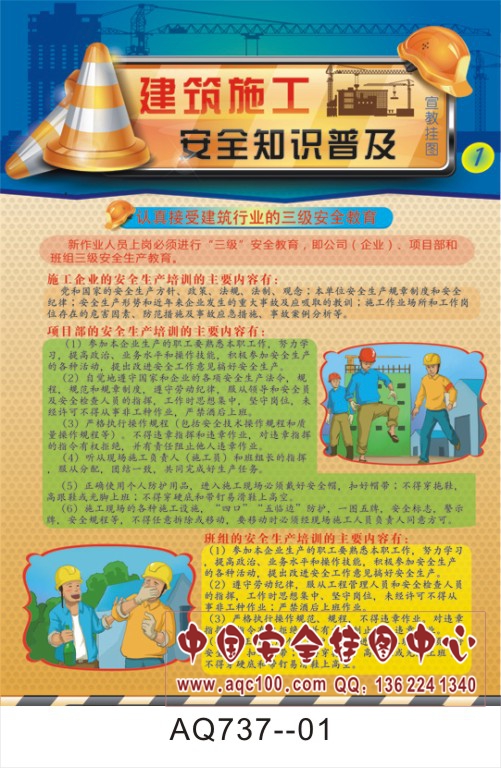 AQ737-01建筑施工安全知识普及宣传挂图 认真接受建筑行业的三级安全教育