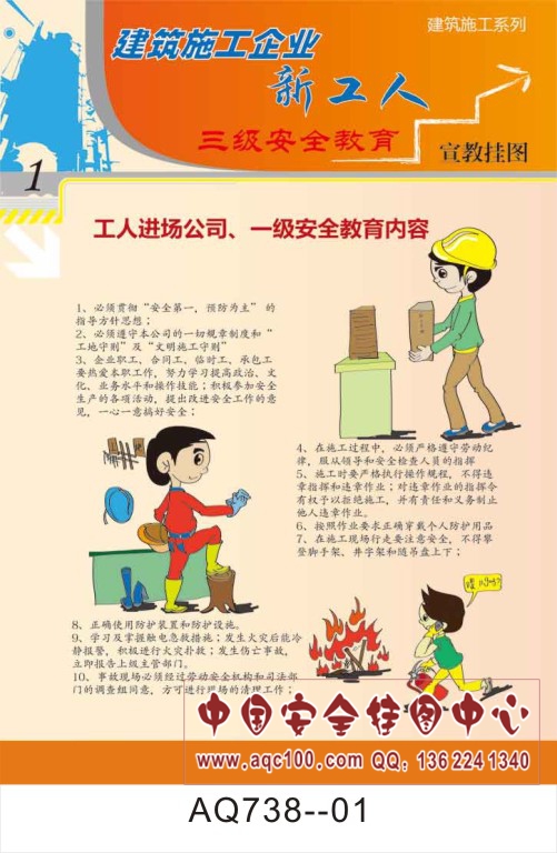 AQ738--建筑施工企业新工人三级安全教育宣传挂图-6张
