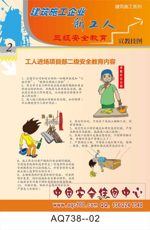 AQ738-02建筑施工企业新工人三级安全教育宣传挂图 工人进场项目部二级安全教育内容