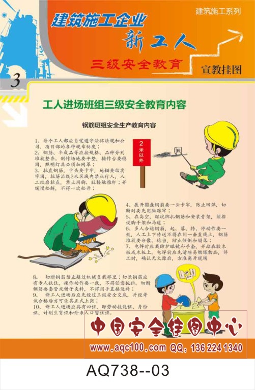 AQ738-03建筑施工企业新工人三级安全教育宣传挂图 工人进场班组三级安全教育内容