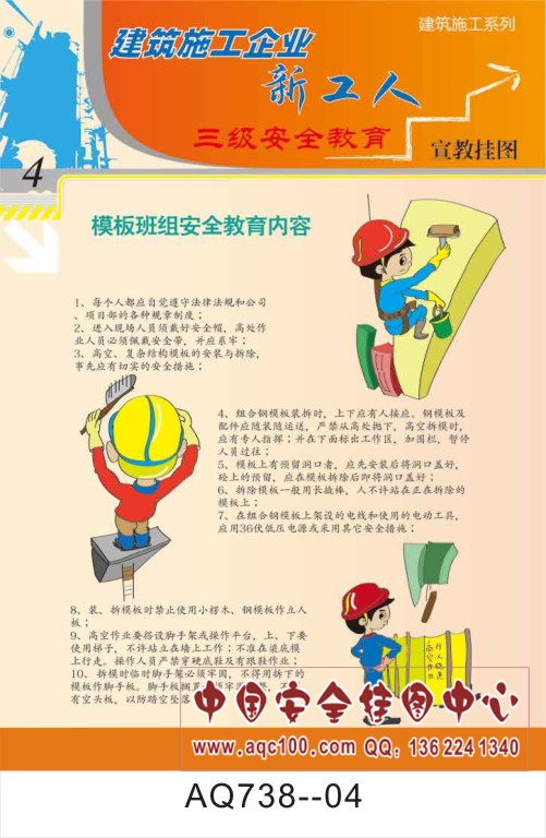 AQ738-04建筑施工企业新工人三级安全教育宣传挂图 模板班组安全教育内容
