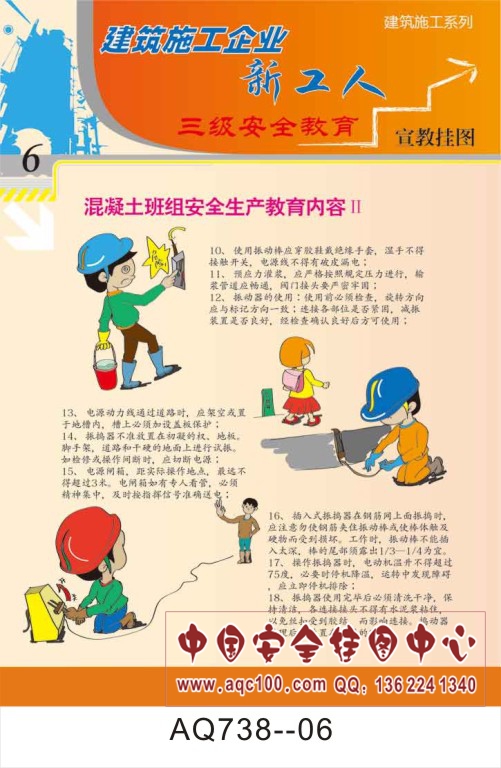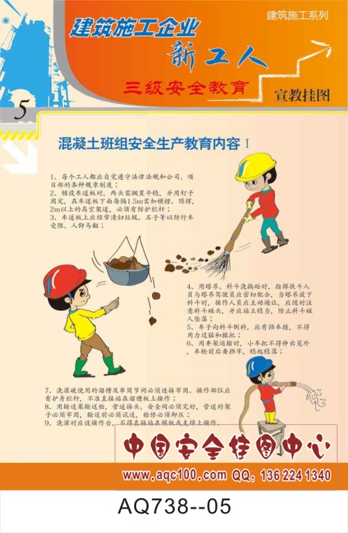 AQ738-05建筑施工企业新工人三级安全教育宣传挂图 混凝土班组安全生产教育内容