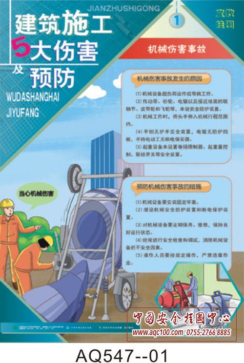 AQ547-01建筑施工五大伤害及预防挂图 机械伤害事故