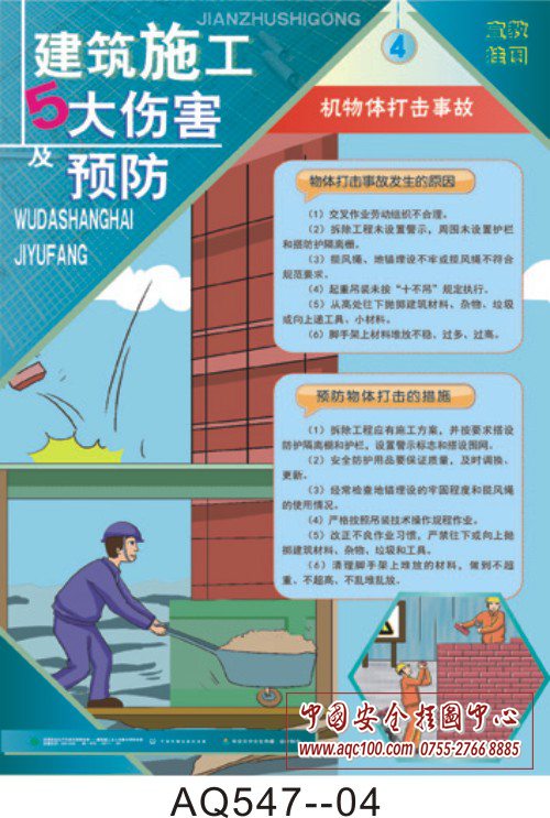 AQ547-04建筑施工五大伤害及预防挂图 机物体打击事故