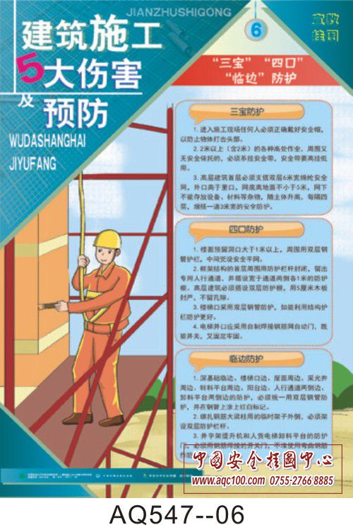AQ547-06建筑施工五大伤害及预防挂图 “三宝”“四口”“临边”防护