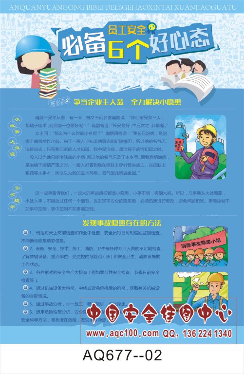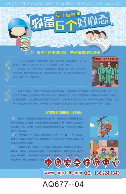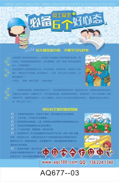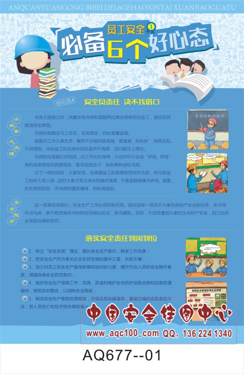 AQ677--员工安全必备6个好心态宣传挂图-6张