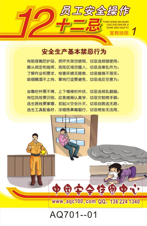 AQ701-01员工安全操作十二忌宣传挂图 安全生产基本禁忌行为