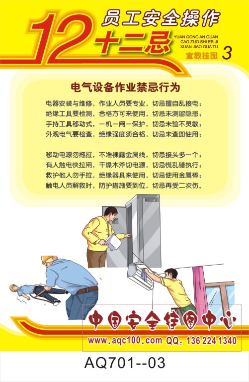 AQ701-03员工安全操作十二忌宣传挂图 电气设备作业禁忌行为