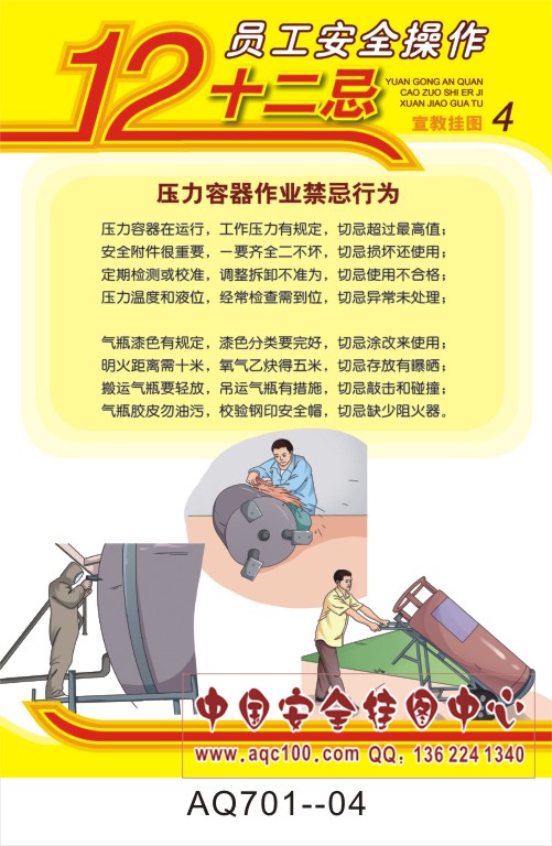 AQ701-04员工安全操作十二忌宣传挂图 压力容器作业禁忌行为