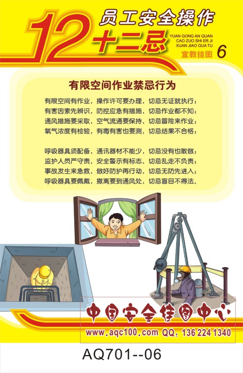 AQ701-06员工安全操作十二忌宣传挂图 有限空间作业禁忌行为
