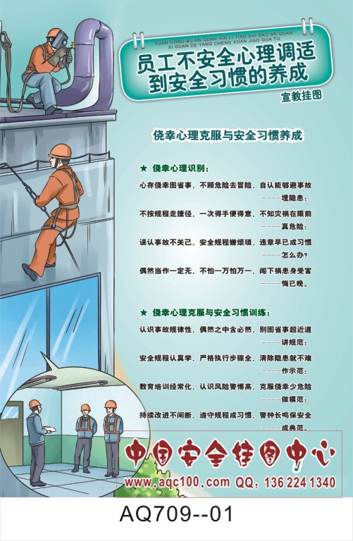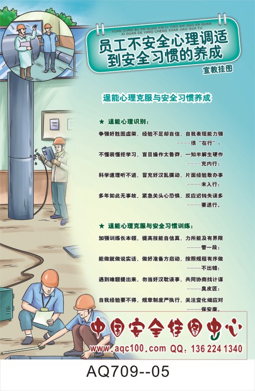 AQ709--员工不安全心理调适到安全习惯养成宣传挂图-6张