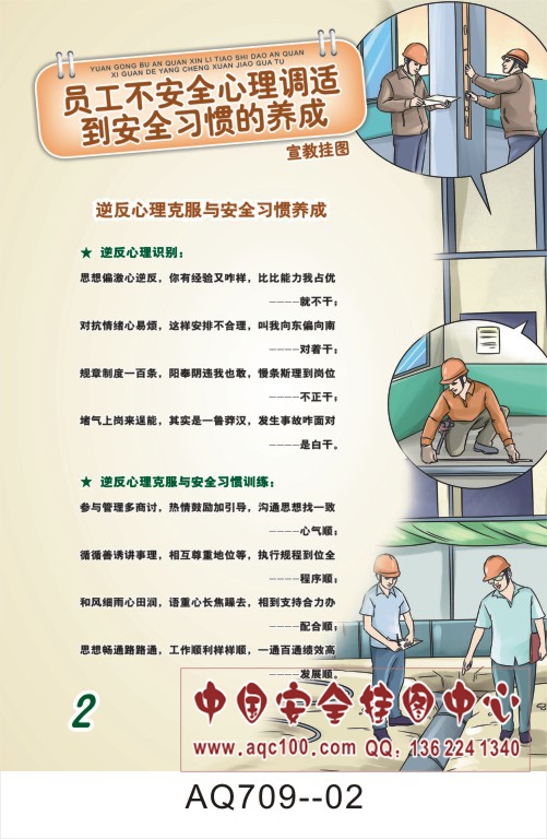 AQ709-02员工不安全心理调适到安全习惯养成宣传挂图 逆反心理克服与安全习惯养成