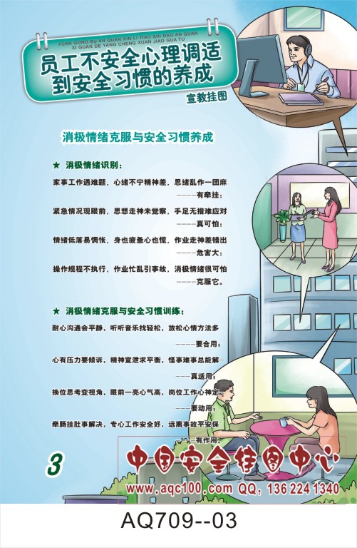 AQ709-03员工不安全心理调适到安全习惯养成宣传挂图 消极情绪克服与安全习惯养成