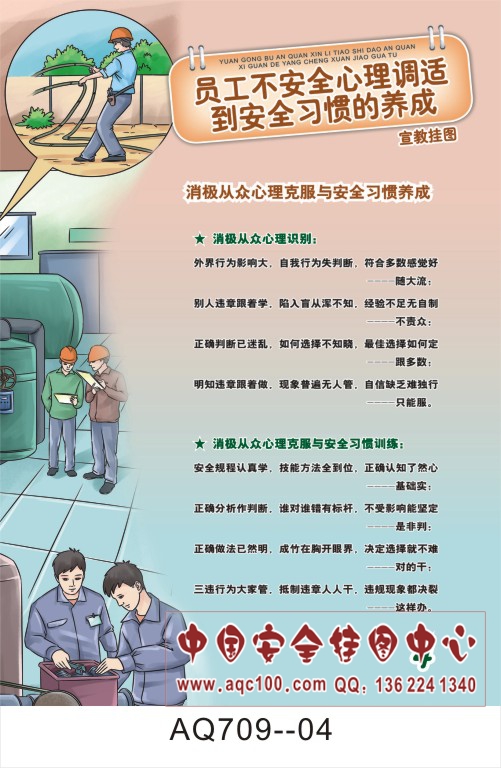 AQ709-04员工不安全心理调适到安全习惯养成宣传挂图 消极从众心理克服与安全习惯养成