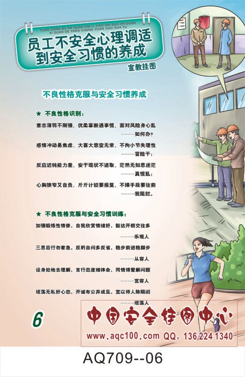AQ709-06员工不安全心理调适到安全习惯养成宣传挂图 不良性格克服与安全习惯养成