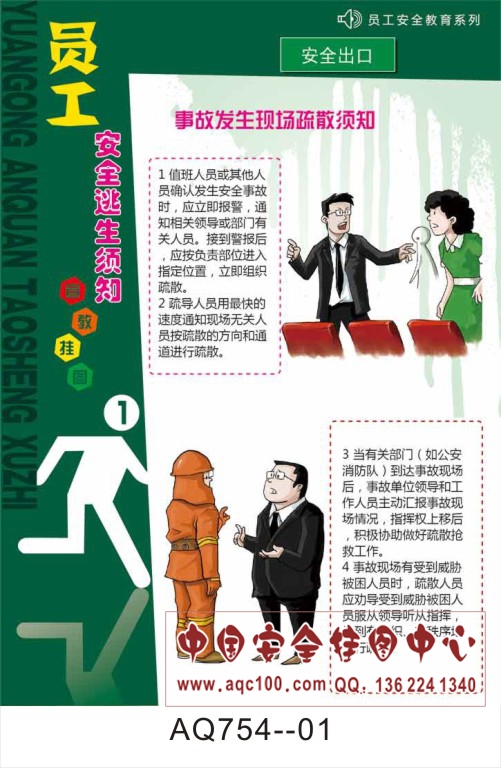 AQ754-01员工安全逃生须知宣传挂图 事故发生现场疏散须知