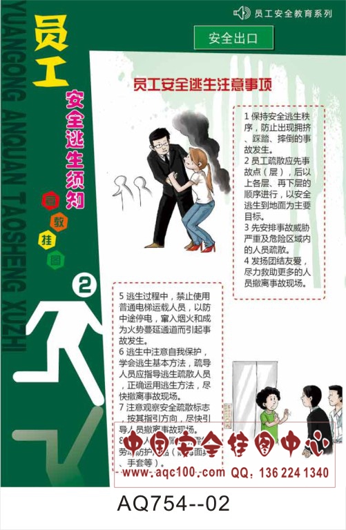 AQ754-02员工安全逃生须知宣传挂图 员工安全逃生注意事项