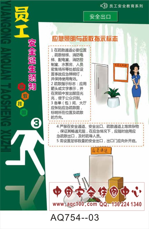 AQ754-03员工安全逃生须知宣传挂图 应急照明与疏散指示标志