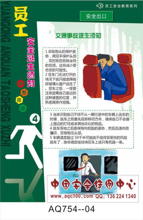 AQ754-04员工安全逃生须知宣传挂图 交通事故逃生须知