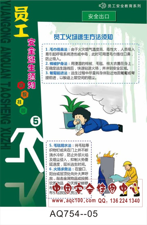 AQ754-05员工安全逃生须知宣传挂图 员工火场逃生方法须知